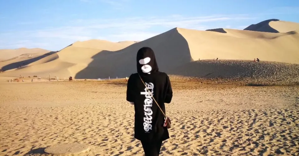 遊客進入景區後,遊客可以直接爬上鳴沙山,欣賞完景色後,選擇滑沙下山。當你從山頂下滑時,會聽到「咚咚咚」的響聲,似敲鑼打鼓,讓人膽戰心驚又頗感刺激,鳴沙山因此得名。