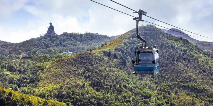 昂坪纜車旅程,連接東湧至昂坪,飽覽香港大嶼山的優美景緻。 纜車一到達就是昂坪市集,也是前往天壇大佛、寶蓮禪寺、大澳漁村等香港景點的上佳方法。 昂坪市集集休閒、購物、和四大主題景點於一身,是旅客及本地人假日遊的人氣熱點! 市集內設有「360動感影院」、「纜車探知館」等主題景點,也提供各色美饌佳餚,可享有多姿多采的消閒、餐飲及購物體驗。
