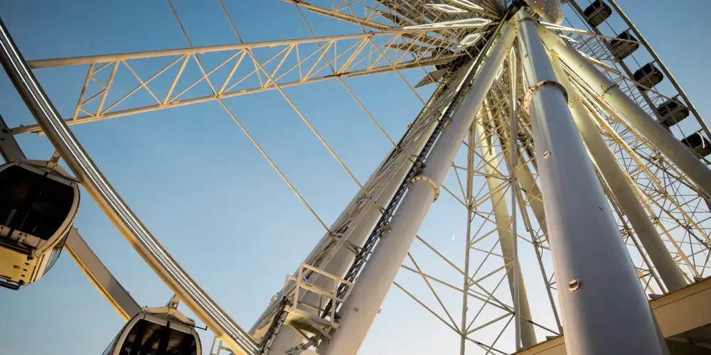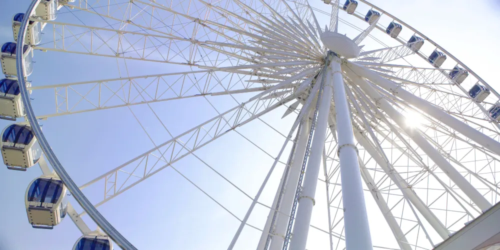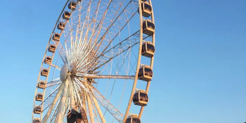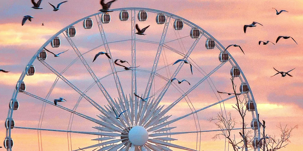 尼加拉摩天輪位於加拿大尼加拉瀑佈景區,是該地區的一大標誌性景觀。作為高達53.3公尺的觀景輪,它為遊客提供了獨特的視角,可以360度全方位俯瞰尼亞加拉瀑布的壯觀景色。搭乘摩天輪緩緩上升,遊客將有機會欣賞美國瀑布、馬蹄瀑布的壯麗景色,以及周圍自然風光的美麗畫卷。夜晚時分,摩天輪與瀑布的燈光交相輝映,營造出浪漫而神秘的氛圍。此外,摩天輪還設有特別的活動,例如節日慶典期間的燈光秀,為遊客帶來更豐富多彩的體驗。無論是家庭出遊,還是情侶約會,尼加拉摩天輪都是不可錯過的景點之一。