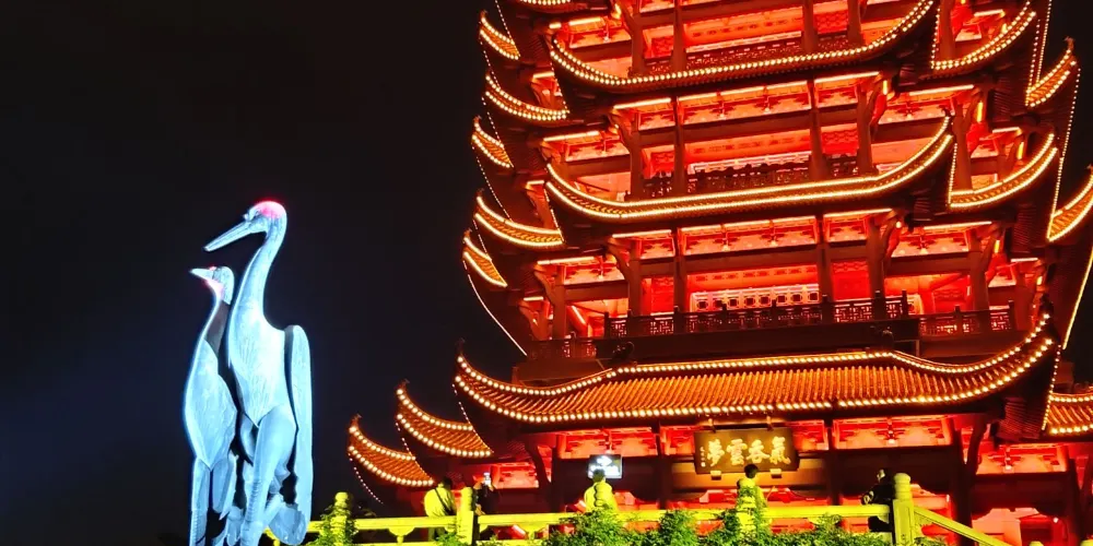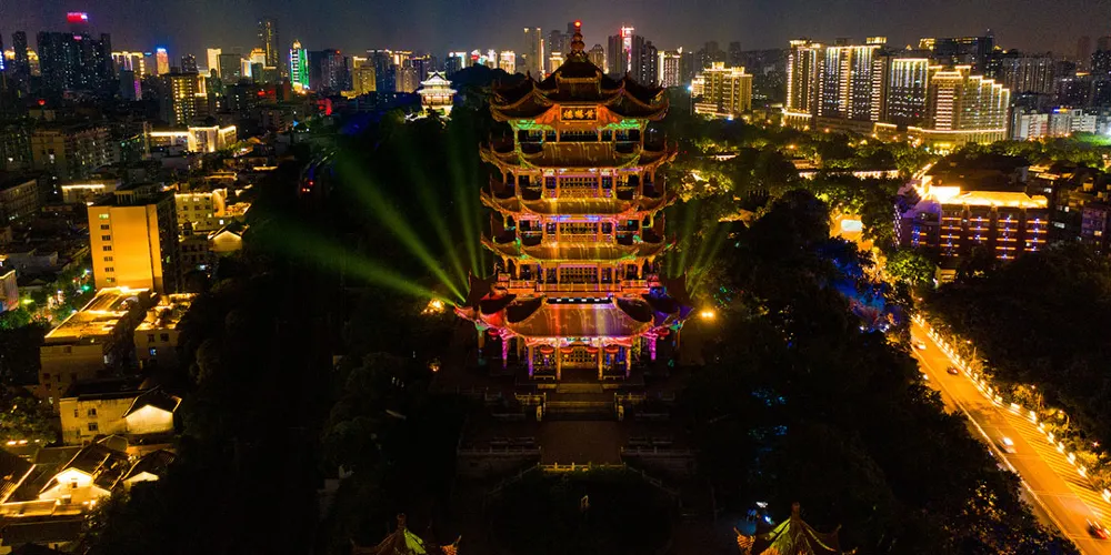 黃鶴樓光影秀,用靈動的燈光展現厚重的歷史。