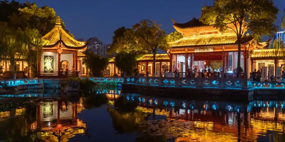 從南門入園,這是夜上黃鶴樓的鵝池。