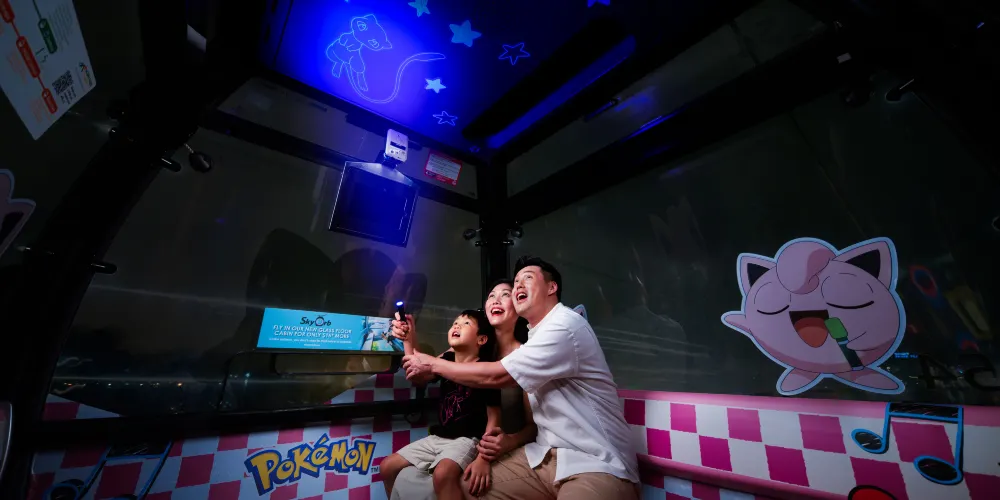 備受期待的 寶可夢“晝夜奇景”體驗 重磅回歸,將新加坡纜車變爲壹段翺翔于寶可夢世界的奇妙旅程。開啓壹段從白天延續到夜晚的獨特冒險。白天,您將乘坐裝飾有初代寶可夢的纜車車廂,與 皮卡丘、伊布和小火龍 等經典角色壹同穿梭。當夜幕降臨,旅程將揭示壹個隱藏的世界。使用免費提供的紫外線手電筒,您可以發現發光的熒光寶可夢輪廓,尋覓稀有的飛行系寶可夢,更有幻之寶可夢 夢幻 作爲終極彩蛋,隱藏在某個車廂之中。