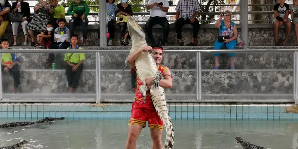 雲石公園鱷魚潭位於芭提雅云石公園內,裡面有數以千計的鱷魚和種類繁多的爬行動物。鱷魚潭不僅能欣賞到千姿百態的鱷魚,還有非常精彩的鱷魚表演,表演者會空手抓鱷魚,或者把頭伸進鱷魚的嘴裡,讓人感到非常驚險刺激。