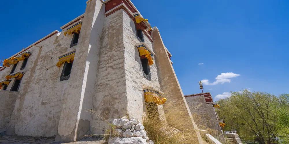 五當召潛藏在包頭市連綿起伏的大青山深處,一幢層層依山壘砌的白色建築,群山環繞,為蒼松翠柏掩映,雄渾壯觀。創建於清康熙年間,是內蒙古較大的藏傳佛教格魯派寺院。與西藏的布達拉宮、青海的塔爾寺和甘肅的拉卜楞寺並稱為中國喇嘛教的四大名寺。是典型的藏傳佛教寺院的風格,沒有統一的中軸線,所有的大殿都不規則地散佈在山谷中,沒有圍牆和院落,各建築自成一体。各大殿的頂部還有風磨銅羚羊對臥法輪和寺徽,金光璀璨,周邊群山松柏、經幡飄舞,顯得格外壯觀。的主體建築,以八大經堂(現存六座)、三座活佛邸和一幢安放本召歷世活佛舍利塔的靈堂組成,遊客在景區內可以步行遊覽各個主體建築。蘇古沁殿,是寺內較大的建築物,位於寺院前部,高三層。一樓前大廳是經堂,這裡有八十根方柱,上面雕刻和彩繪著各式花紋圖案。經堂的四壁繪滿了釋迦牟尼佛傳故事和各種護法神像。二樓迴廊處繪有「九大佛寺建築」鳥瞰壁畫很是珍貴,你一定不能錯過。每天早晨,各殿喇嘛都來此殿誦讀早經——滿迦經。修建較早的殿宇是,高居於全寺之中,其他建築均以這裡為中心,乾隆皇帝於1756年賜名「」,用滿、漢、蒙、藏四種文字雕刻的牌匾懸掛在殿門正中門楣上。這裡是學習佛教時輪學部,講授天文、曆法、數學、預測未來、推算藏曆日期。殿前廣場是講經、辯經的場所,即學術升級的考場。在金科殿二樓係文物博物館,展出咗部分珍貴嘅館藏文物。你可以欣賞到唐卡、清代景德鎮瓷器、活佛嘅生活用品、法器,同埋內蒙古僅有嘅兩座鎏金曼陀羅壇城其餘各殿也各有特色,有的殿內立有高達十米的釋迦牟尼銅像;有的大殿內供奉著高達九米的黃教始祖宗喀巴大師的銅像,有的殿內供有面目猙獰的護法金剛像,或者供奉白度母和綠度母塑像等。這裡的廟會是每年農曆七月二十五至八月初一舉行,全寺的喇嘛在念「嘛呢經」;傍晚喇嘛們手持經輪,吹著法號,敲著羊皮鼓繞寺廟而行。廟會活動五花八門,跳鬼是其主要活動之一,感興趣的千萬不要錯過。部分殿宇因為臨時或者其他情況會關閉不對外開放,具體以當日景區公告為主。地處偏僻,周邊的服務設施不是很完善,住宿和飲食條件一般,多數遊客會選擇當日返回包頭市區住宿。