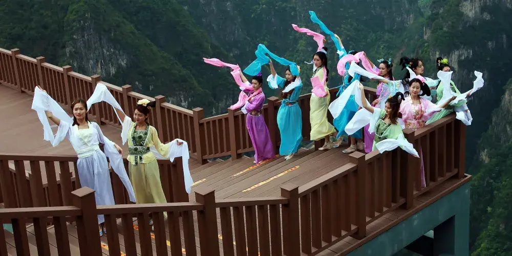 神女天路全長12公里,平均海拔1200多米,而公路盤旋於懸崖峭壁之間,車輛時常穿行於霧靄之中,如同在天上行走,因而命名神女天路。2016年紅葉節正式對外開放。遊客乘坐觀光車在陡坡中盤旋,雲霧中穿梭,猶如天路。沿途分佈有5個觀景平台(即:天盞燈、仙履台、瑤台、山神廟、飛雲台)。一路風景如畫,山清水秀。在這裏沿途可俯瞰長江、隔江對望神女峯、神女廟、賞峽江煙雲、尋巫峽神龜、驚長江倒流,參與民眾表演體驗互動。還可以觀賞萬山紅葉、巫山雲雨,是攝影愛好者的常選之地。