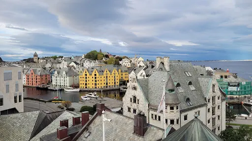 觀景台所在山體曾是二戰時期的軍事要塞,如今仍保留部分歷史痕跡。其人性化設計體現在細節之中:階梯上的數位標記即時提示攀登進度,山頂停車場與步道的分流設置兼顧不同遊客需求。作為奧勒松文化脈絡的重要節點,這裡既可遠眺蓋朗厄爾峽灣出海口,又與市中心的威廉二世雕像、奧勒松大教堂等歷史地標形成遊覽動線。這座自然與人文交織的觀景台,以多維視角詮釋著挪威西部港城的詩意與傳奇。