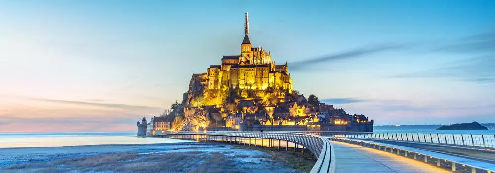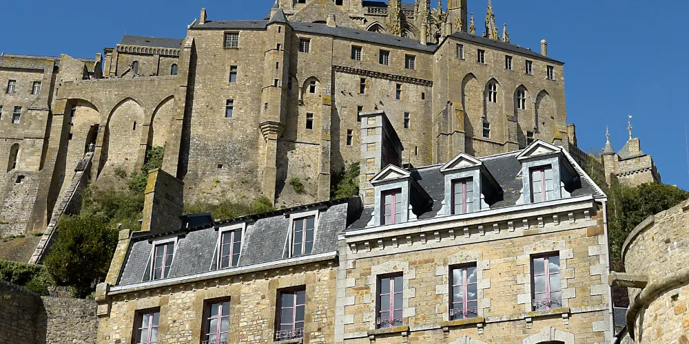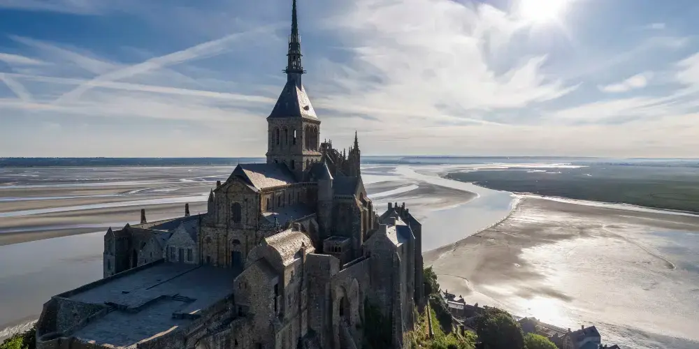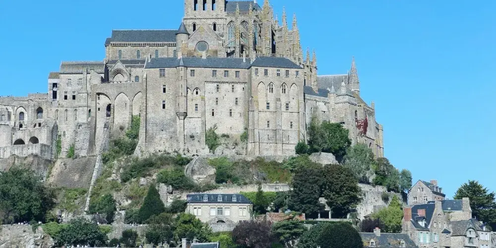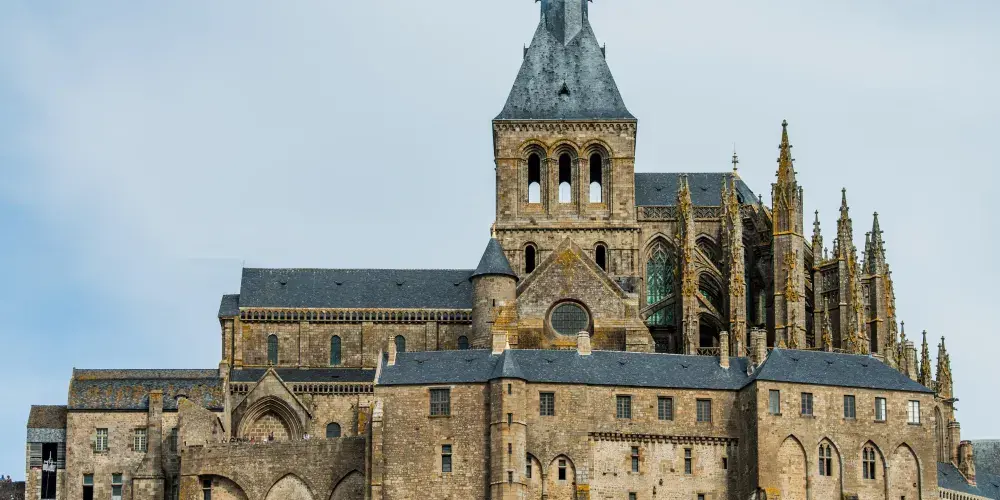 聖米歇爾山修道院位於聖米歇爾山上。聖米歇爾山俯瞰著北部的英吉利海峽。寺院猶如山頂的點睛之筆,使其整體視覺效果蔚為壯觀。它是英國人佔領的地方,也是天主教的第三聖地。