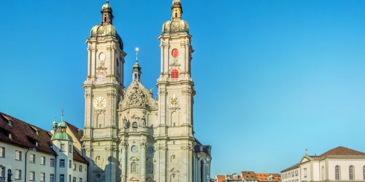 聖加倫修道院呈馬蹄形排列,正門在兩座塔樓的烘托下尤顯雄偉。兩座塔樓各高68米。