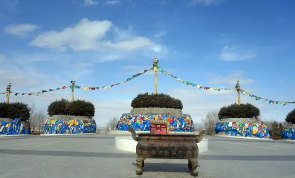 白音查幹敖包,位於內蒙古自治區錫林郭勒盟錫林浩特市西42公里處路南端。“?滓舨楦傘泵曬龐錛錘蝗鬧猓滓舨楦砂槳褪歉蝗牡牡胤健U飫鍔教甯嘰螅諏衫牡湫筒菰錚瀉琢⒓θ褐小?/p>祭祀白音查幹敖包始於貝子廟一代活佛巴拉吉爾隆德布時代,距今已有二百多年的歷史,貝子廟的歷代活佛專祭這個敖包。白音查幹敖包的祭敖包活動,在每年的農曆五月初七。祭祀完白音查幹敖包的當天,一般還要到位於該敖包東北方向(約四公里)的寶力格敖包祭祀。白音查幹敖包北側山下是一片儲量豐富的芒硝湖,湖邊鵝卵石下湧動着清涼的優質礦泉水,這一鹼水共生一處的奇觀令人感歎。