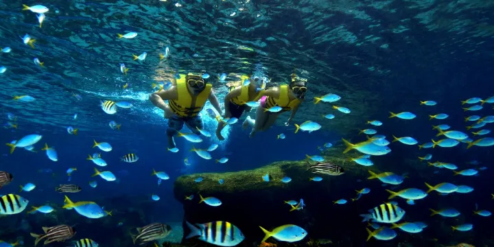 除了這些驚險刺激的滑道,有機會和海洋生物近距離接觸也是水上探險樂園的一大特色。在彩虹礁遊,您可以在七彩珊瑚中與2萬多條熱帶魚一同浮潛,欣賞令人驚嘆的海底美景。