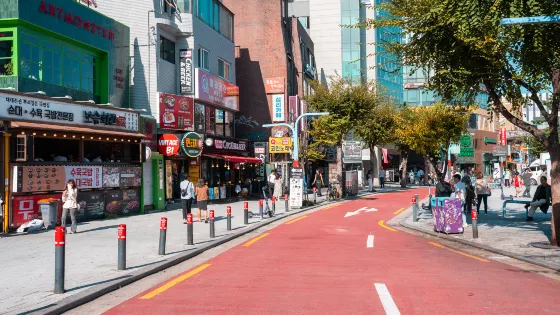 新村周圍有延世大學、西江大學和梨花女子大學,每天來往的人群大部分是大學生和年輕人,因此充滿青春和生機。