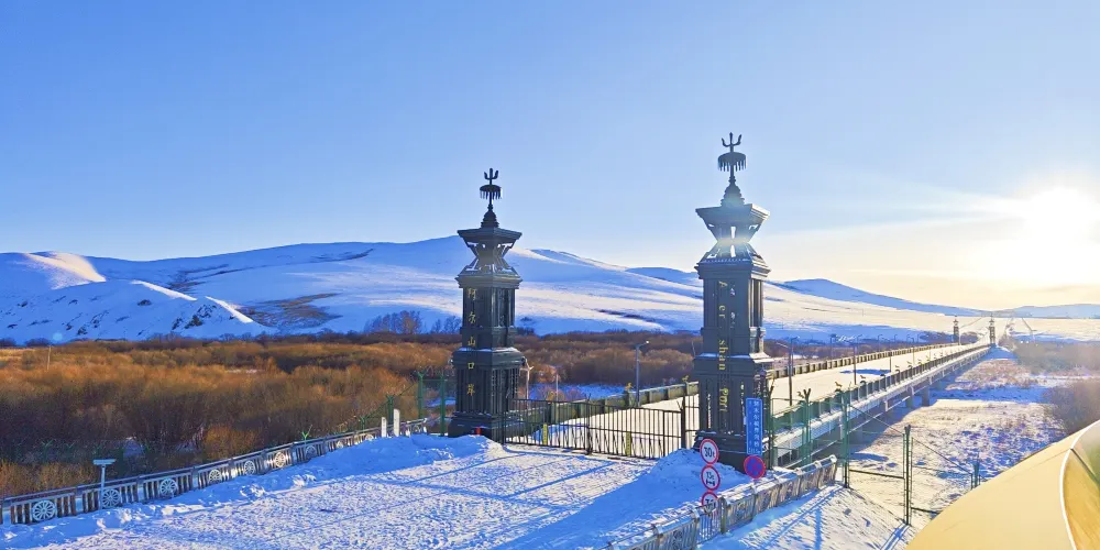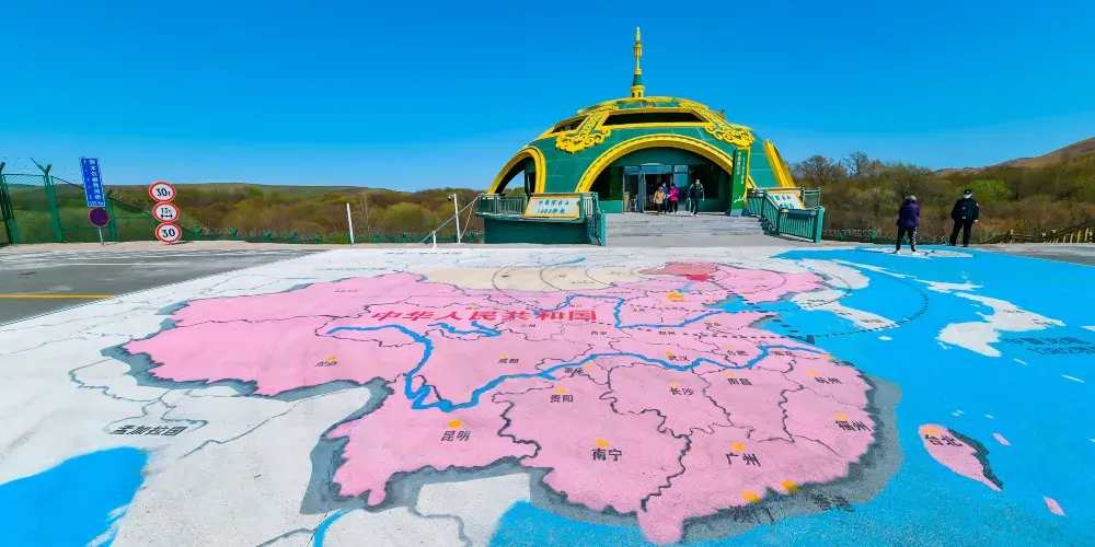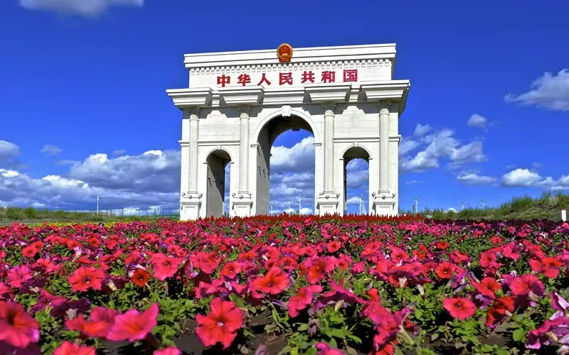 它的標誌性建築是巍峨壯觀的國門,上面醒目地寫著「中華人民共和國」,象徵著國家尊嚴與榮耀。 景區周邊自然風光壯麗,草原、森林與河流交織,形成了獨特的邊境景觀。