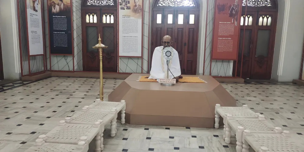 進入宮內可以參觀展示甘地一生特殊事件的照片廊,還有甘地當時的日常生活用品,如甘地的衣物和慷慨激昂的信件。