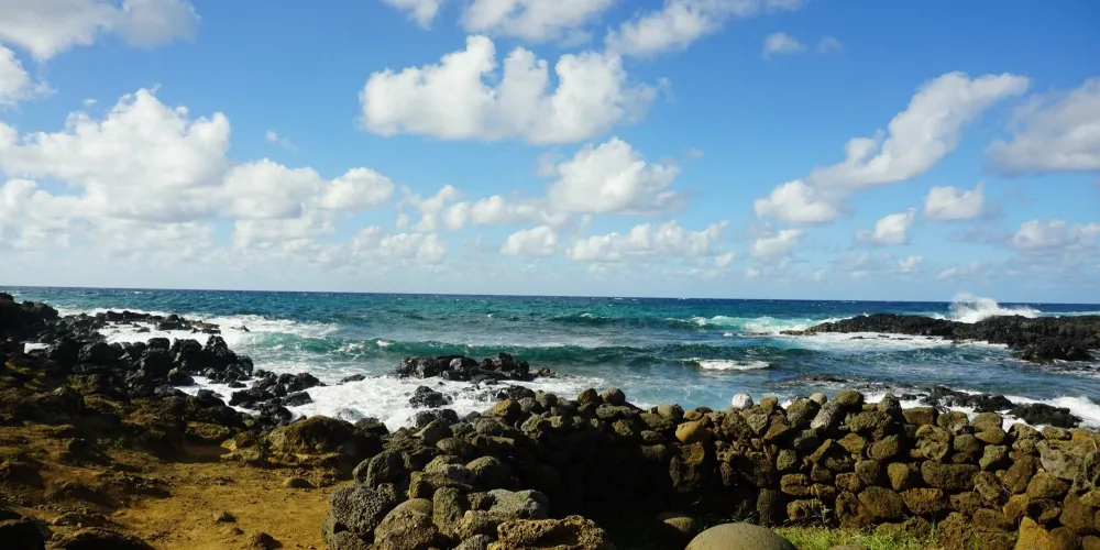 這是一處神祕的摩艾石像羣。可近距離觀察這些雕塑的精細工藝,並在金色沙灘上享受陽光與海浪。