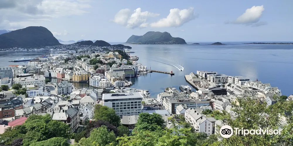 觀景台所在山體曾是二戰時期的軍事要塞,如今仍保留部分歷史痕跡。其人性化設計體現在細節之中:階梯上的數位標記即時提示攀登進度,山頂停車場與步道的分流設置兼顧不同遊客需求。作為奧勒松文化脈絡的重要節點,這裡既可遠眺蓋朗厄爾峽灣出海口,又與市中心的威廉二世雕像、奧勒松大教堂等歷史地標形成遊覽動線。這座自然與人文交織的觀景台,以多維視角詮釋著挪威西部港城的詩意與傳奇。