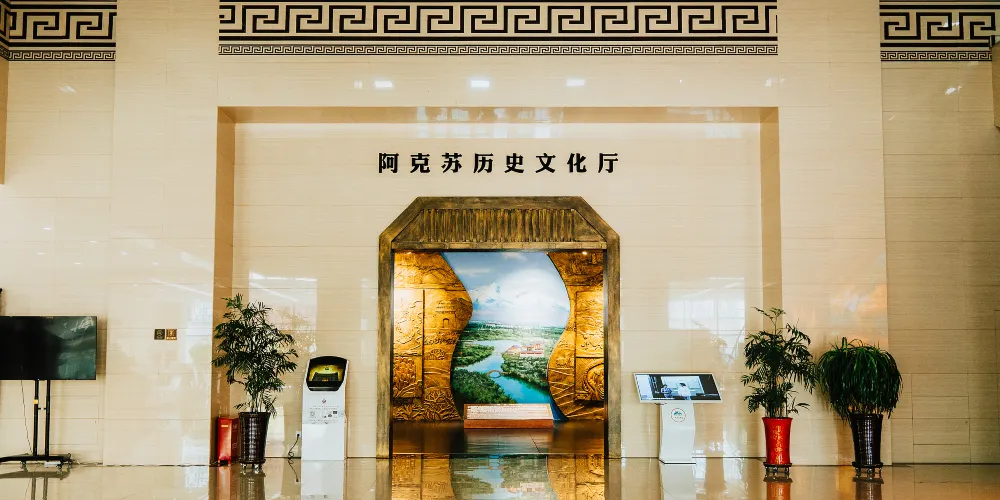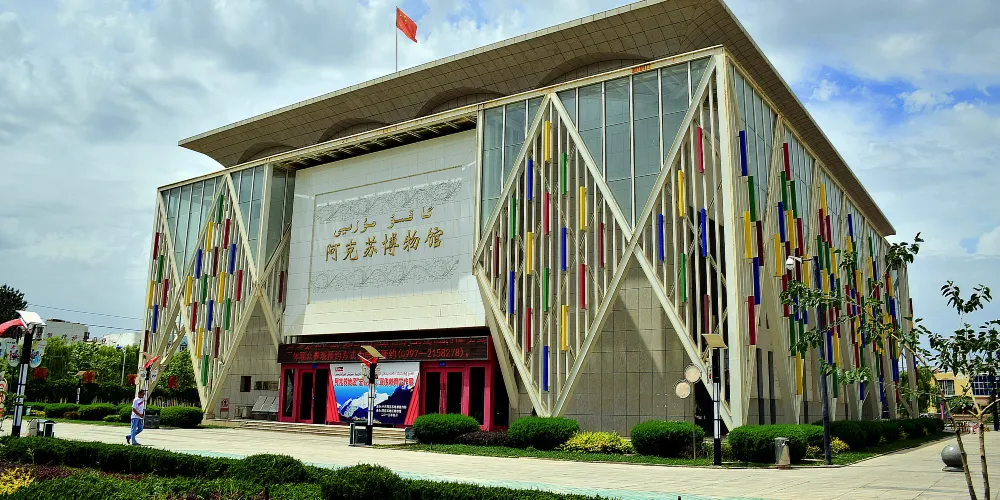 阿克蘇地區文博院(博物館)於2017年12月26日落成並正式對外開放,新館坐落於風光秀美的多浪河畔,館舍內外設計的方法彰顯漢唐風韻,氣勢雄渾莊重,融中華傳統、地方特色和時代精神於一體。總投資1.8億元,建築面積1.8萬平方米,展廳面積近9000平方米,館藏文物1萬1千餘件。由「阿克蘇歷史文化」「新疆古代貨幣」「阿克蘇自然地理」「紅船啟航 逐夢前行」四個常設展廳、三個臨時展廳、全疆一家數位化展廳和龜茲洞窟復原展廳等組成,展現出阿克蘇深厚的歷史文化與獨特的自然風貌。