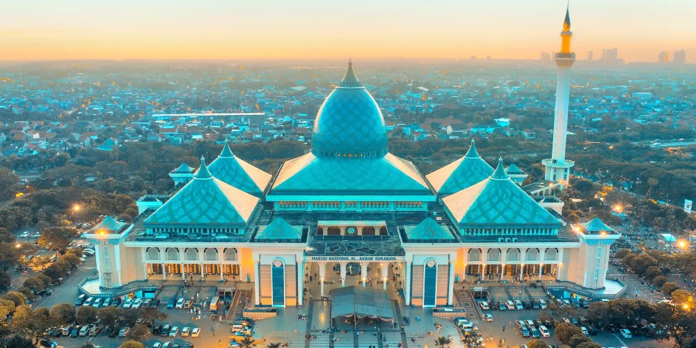 阿爾阿克巴爾清真寺位於印尼東爪哇省的泗水市,是全國較大的清真寺之一,也是東南亞地區宏偉的伊斯蘭建築之一。清真寺以其壯觀的建築設計和宗教意義吸引著來自世界各地的遊客和信徒。阿爾阿克巴爾清真寺的建築風格融合了傳統伊斯蘭建築元素與現代設計概念。宏偉的藍綠色圓頂和高聳的宣禮塔成為泗水市的地標,其內部裝飾精美,寬敞的祈禱大廳可以容納數千名信徒同時進行禮拜。除了作為宗教活動的中心,阿爾阿克巴爾清真寺還承擔著重要的社會和文化功能,寺內設有伊斯蘭教育中心、圖書館和會議設施,定期舉辦各種宗教和文化活動,促進社區的團結與發展。阿爾阿克巴爾清真寺不僅是一個宗教聖地,也是一個文化交流的場所,展示了印尼多元文化的和諧共存。