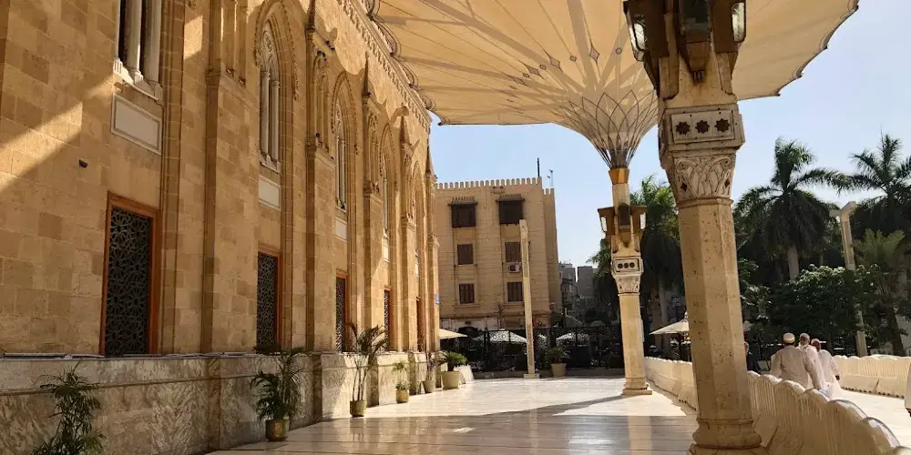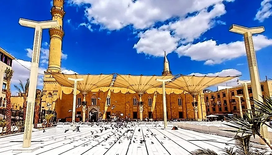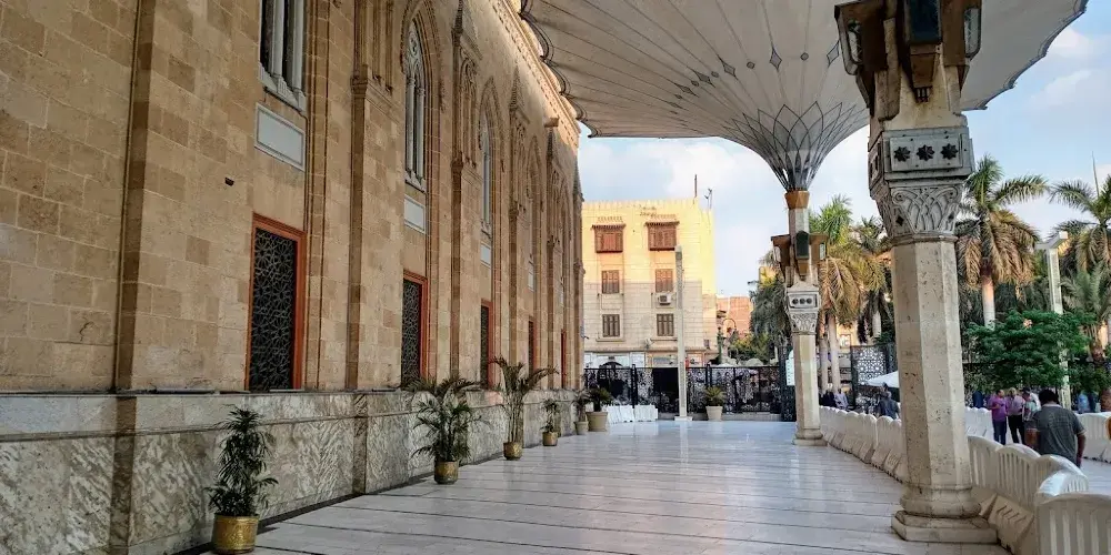 该地毗鄰有名的哈利利市場,是埃及很神聖的廟宇之一,也是名流顯要乃至埃及總統在特殊場合進行祈禱的專門聖地,這裡的祭祀則是埃及很高規模的典禮。