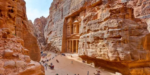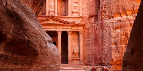 卡茲尼神殿,又稱卡茲尼寶庫是一座由玫瑰紅色彩巨岩鑿雕而成的。這座高一百四十英呎,寬九十英呎,有著濃濃濃希臘風味的壯麗建築,據說曾經是海盜窩藏珠寶的地方,也就是家喻戶曉阿里巴巴與四十大盜故事的發祥地。