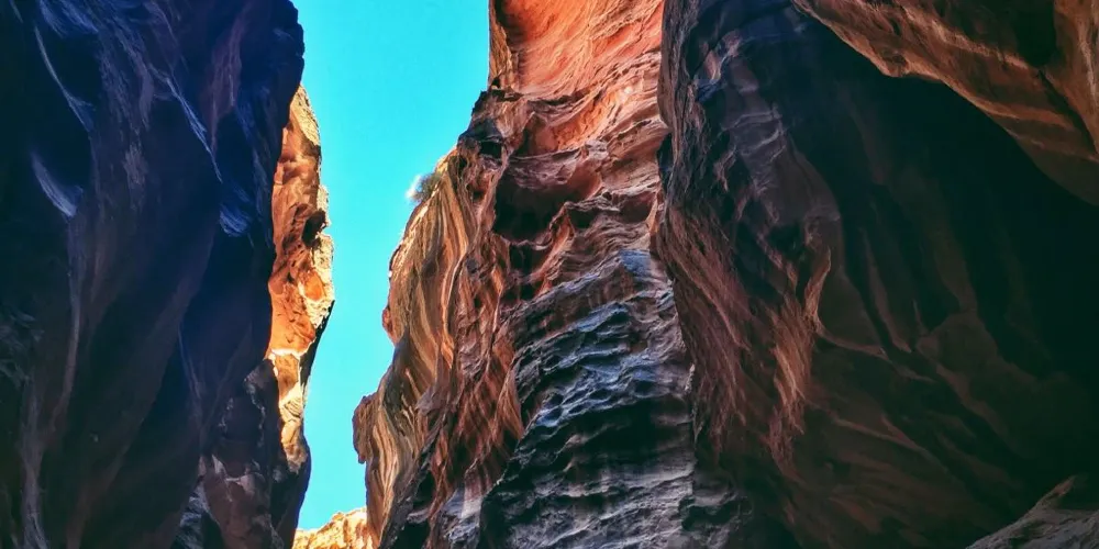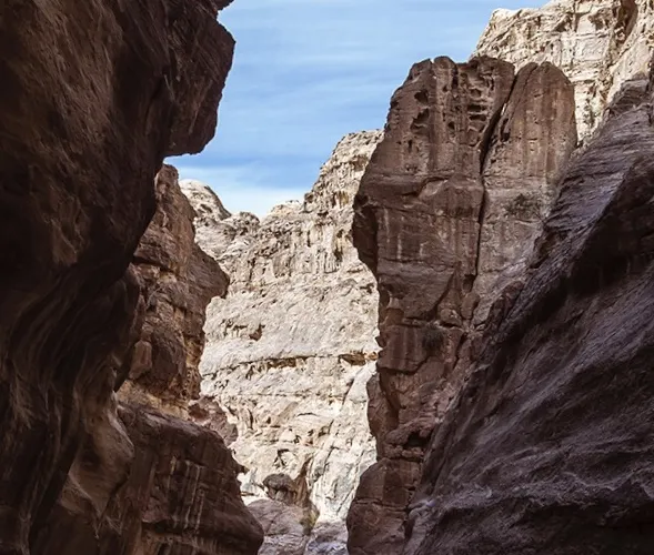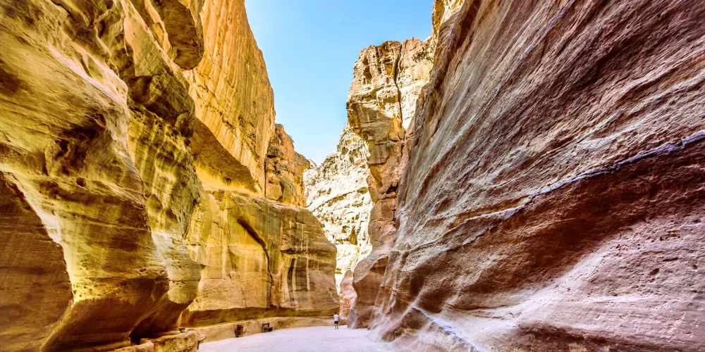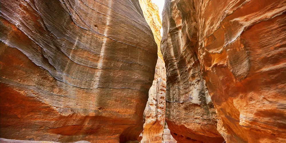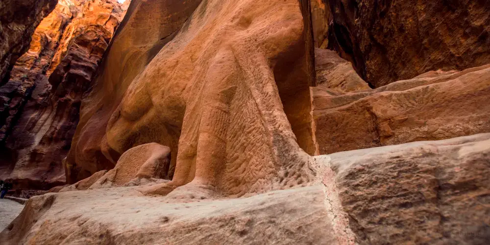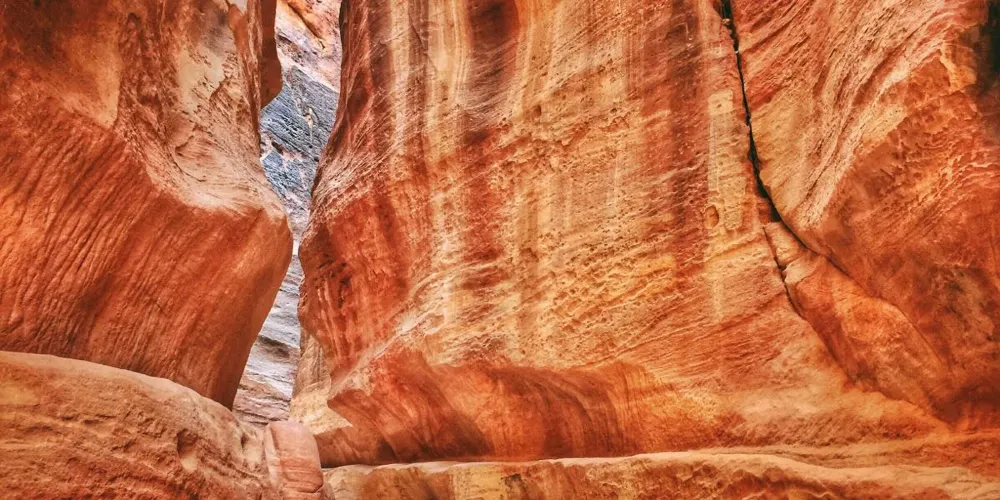 蛇道是佩特拉的門戶,實際上是一條長1公裡、高達近百米的岩石裂縫。走在其中,令人不能不驚歎大自然的鬼斧神工,同時羨慕佩特拉人的好運,竟然可以找到這樣一個天然的庇護所。