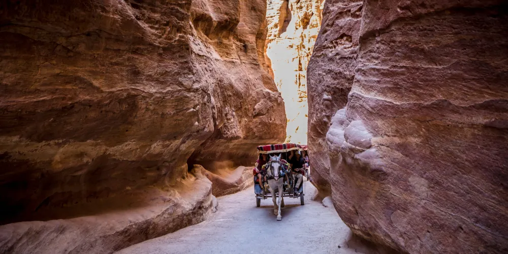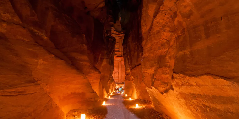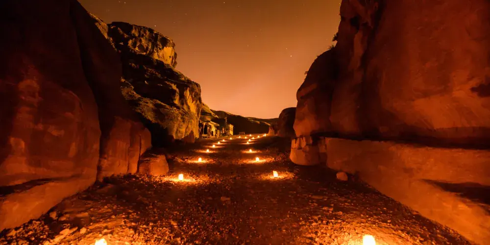 佩特拉之夜是約旦佩特拉古城的獨特體驗,活動通常在每週的特定晚上舉行,遊客可以在夜幕降臨後進入佩特拉,沿著蜿蜒的峽谷小徑步行至“卡茲尼神殿”。沿途,數千隻蠟燭點亮了道路,為這段旅程增添了浪漫和神秘的氛圍。到達神殿前,遊客會被安排坐下,欣賞傳統的約旦音樂表演和貝都因人的故事敘述。這些表演不僅增添了夜晚的文化色彩,也讓遊客更深入了解當地的歷史和傳統。整個活動大約持續兩個小時,是視覺和聽覺的雙重享受。建議遊客穿著舒適的鞋子,以便在沙地和石子路上行走。由於夜間氣溫較低,攜帶一件輕便的外套也是明智之舉。佩特拉之夜為遊客提供了一個在星空下探索古城的機會,是一次難忘的文化體驗。