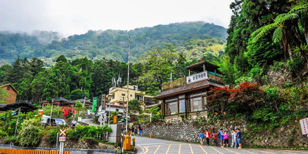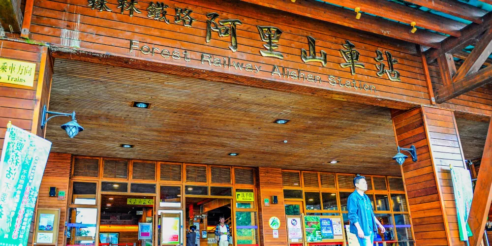 奮起湖車站品當地特產—山葵和娃娃菜,從奮起湖車站繼續行駛到阿里山以Z字型方式往返登山,時而前進時而倒退,這也就是闻名的“阿里山火車撞壁”。