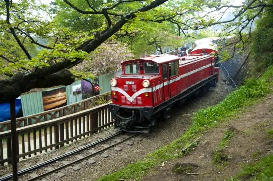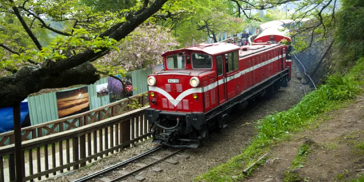 火車:紅色的小火車穿梭在櫻花林間,這個畫面幾乎已經成為了阿里山的象徵。復古感滿滿的小火車早年被用來運送木材,而現在已經是觀光客間的人氣景點了。鐵路從嘉義火車站一直聯通到遊樂區內,祝山線是觀日出的不二選擇,神木線則可抵達巨木參天的森林區,想要玩遍遊樂區,搭乘這兩條線相當方便。