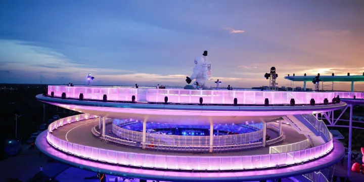 該平台通過創新融合視覺科技與公眾參與體驗,突破傳統航天科普模式,打造集震撼觀禮、深度研學、魅力夜遊、休閒娛樂、餐飲購物、航天精神教育、文化活動、活力商業等多種功能於一體的國際化航天主題綜合體,實現「航天科技+」的全新體驗,致力於成為海南自貿港的科技旅遊新地標,成為民眾感受航天夢想、領略科技力量的重要窗口。