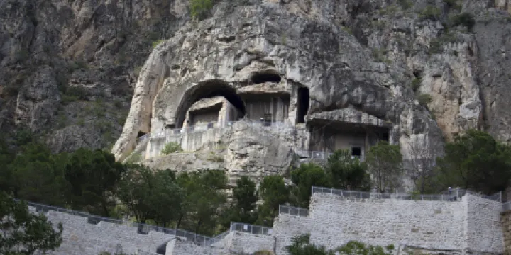 - 0分距離市中心12.1公里本都王陵的峽谷中一共有超過20座陵墓,都掩藏在石灰巖中,開鑿年代可追溯到公元前4世紀。這是公元前三世紀至公元一世紀的三百多年時間裏,安納託利亞中北部地區一個叫做本都國家王陵的所在地。本都原是波斯帝國的附屬國,後從屬於安提柯王朝,然後於阿瑪西亞建都,這個古老的國家留下的遺跡不多,本都王陵就是其中之一。王陵中風景優美,地勢險峻,遊客可從市內步行上山近距離觀察留下來的墓穴。