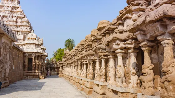 凱拉斯納塔寺廟位於甘吉布勒姆城市西側的盡頭,是7世紀帕拉瓦王朝興建的最早的達羅毗荼文化風格的神廟,也是最美麗的神廟之一。