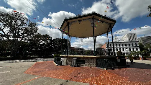 墨西哥街一直被認為是洛杉磯的發源地,完好地保留了加州的早期風貌,洛杉磯較早的建築Avila磚屋就坐落於此。墨西哥風情的攤鋪、小吃比比皆是,公園有一個圓頂的雕花高台,每逢節日,熱情的墨西哥人就會穿上傳統的禮服,在此唱歌跳舞匯聚一堂。