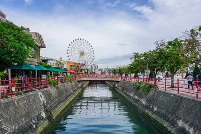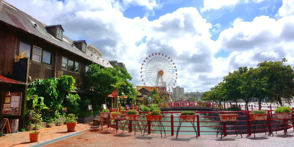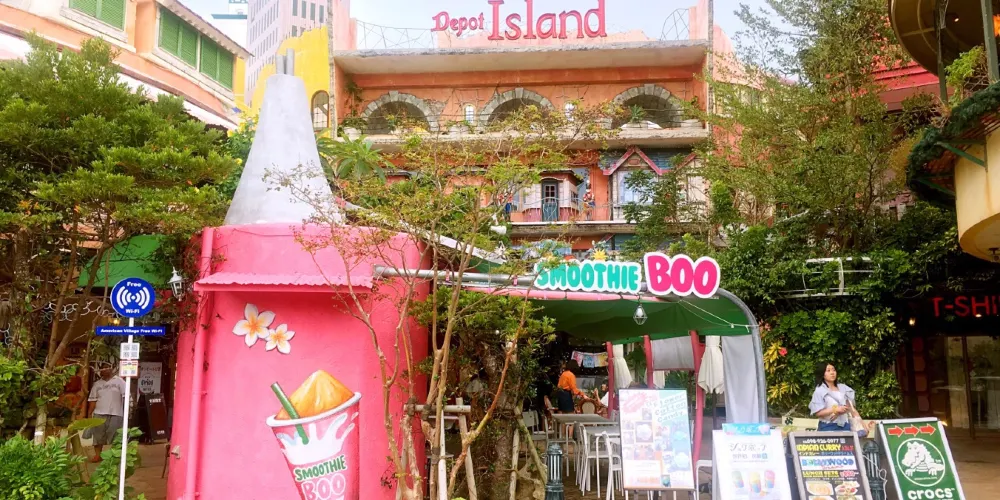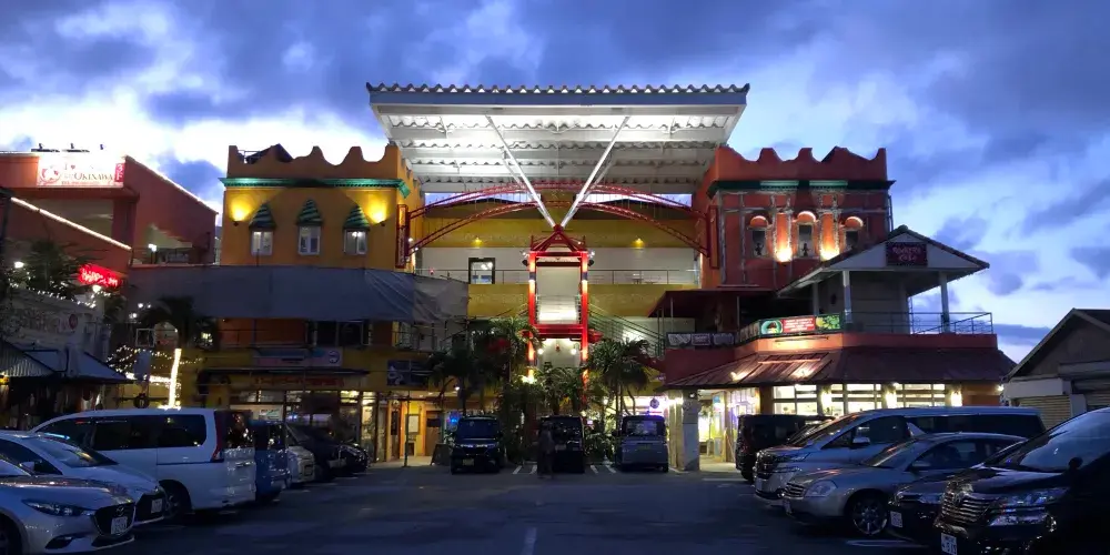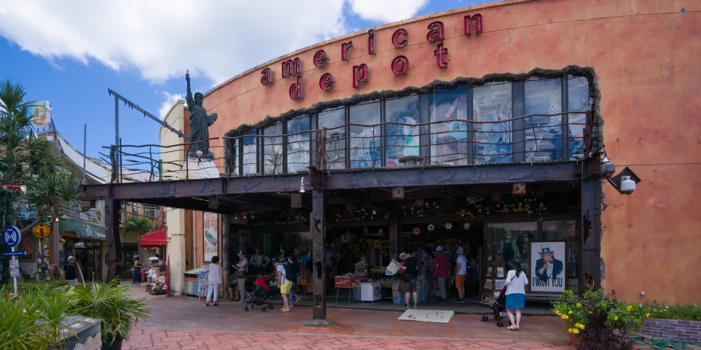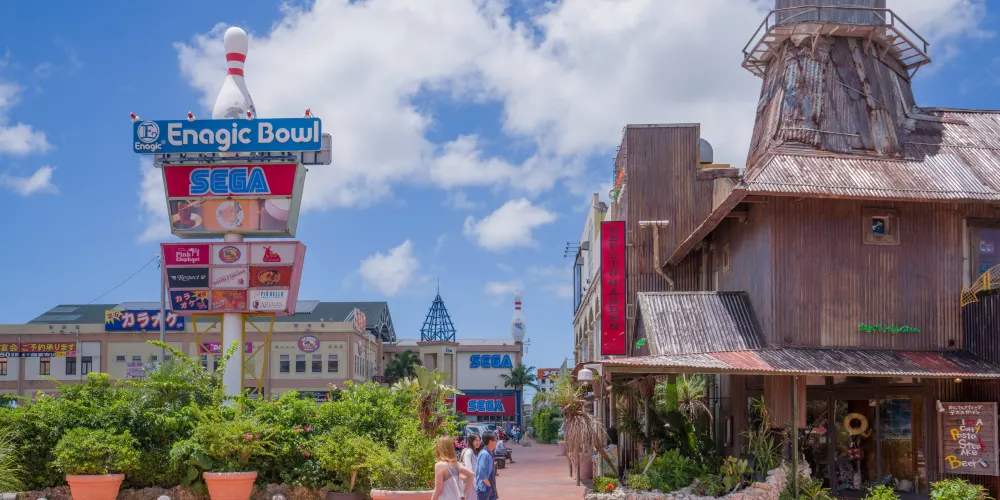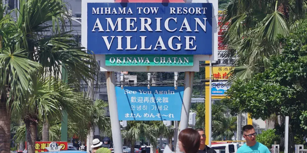 美國村是一處綜合文化商業設施,有以3D映像為主體的娛樂設施,街區內有電影館、購物中心、保齡球場、美國餐廳、錄音室、娛樂中心、進口雜貨店等。原本是為了滿足附近美軍駐地軍人及家屬的生活需求,逐漸形成美國風情濃郁的生活區,如今滿異國風情,雜貨舖、小吃店、咖啡館雲集,遊客會專程來此搭乘摩天輪俯瞰美國村全景。