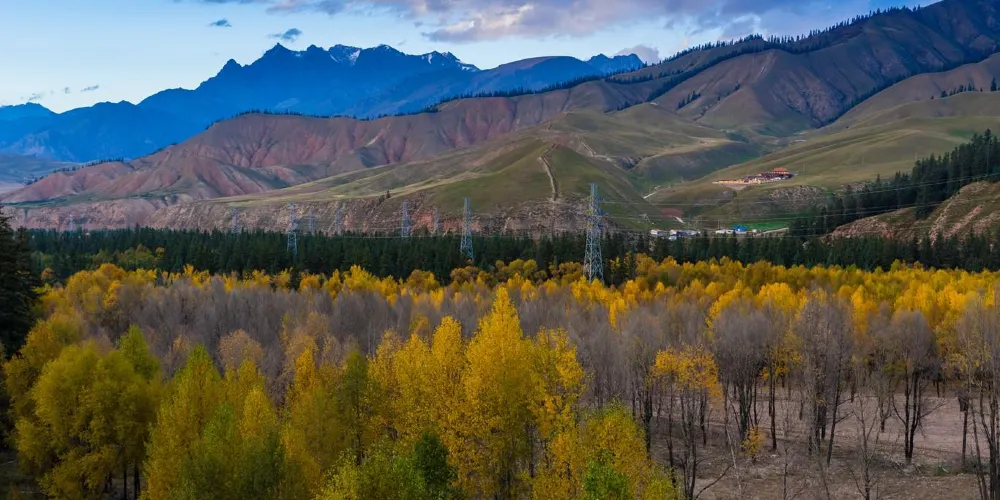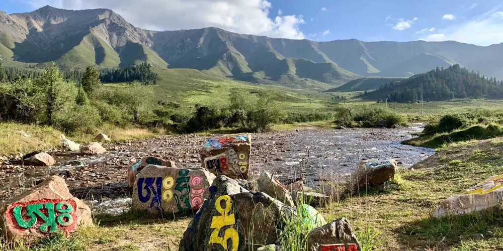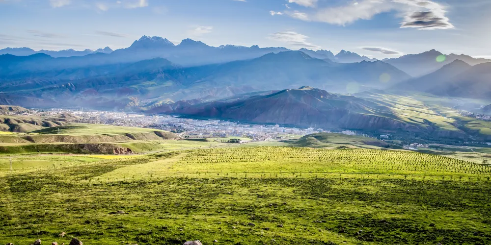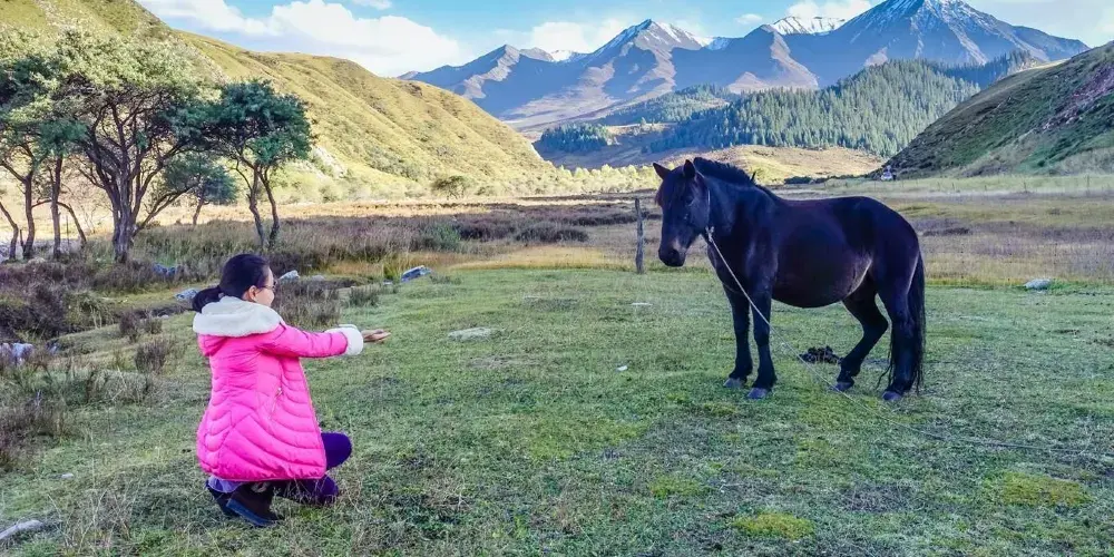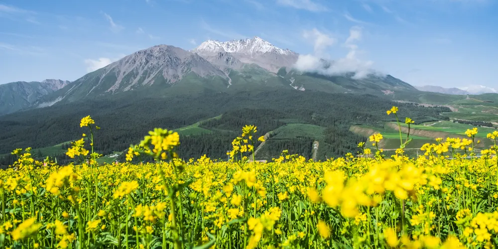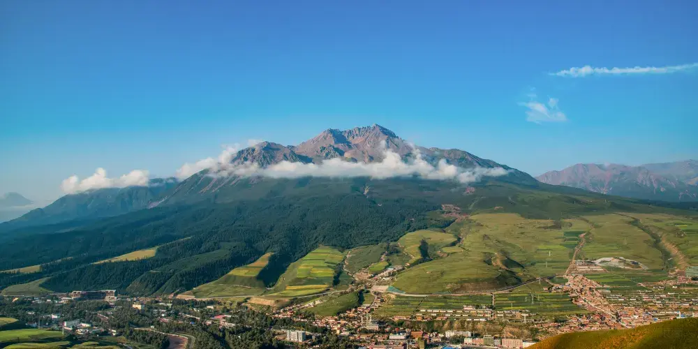 牛心山又名“阿咪東索”,意為“千兵哨卡”,裕固族稱之為“乃曼額爾德尼”,意為八寶山,因阿咪東索四周地形如八寶而得名,是一座當地少數民族心中的神山。對於旅遊者來說,阿咪東索的景色非常絕妙,那就是一山四季的奇觀,山體底部麥浪翻滾,鳥語花香,一派高原河穀的農家景象,春意盎然;山麓綠草如茵,是優良的牧場,夏意融融;中部或稍向上的廣闊區域為灌木叢林,儼然一派林海風光,秋意瑟瑟;舉目向上從稀疏植被逐漸過度到石山,峰頂常年積雪不化,冬意聖潔。