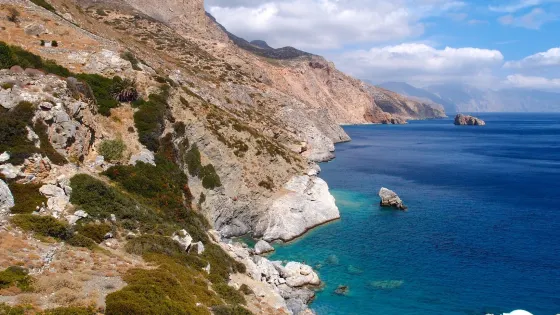 Katapola位於阿莫爾戈斯島西北海岸的一個海灣內,是這座島嶼比較大也是主要的港口。港口周邊植被茂盛,是島上非常葱綠的地方,曾發掘出許多珍貴的文物古蹟。港口上方還有迷人而巨大的Minoa古城遺跡連同一個邁錫尼墓地,你可以順着一條鋪滿石階的平路前往參觀。