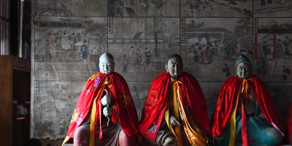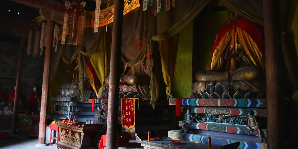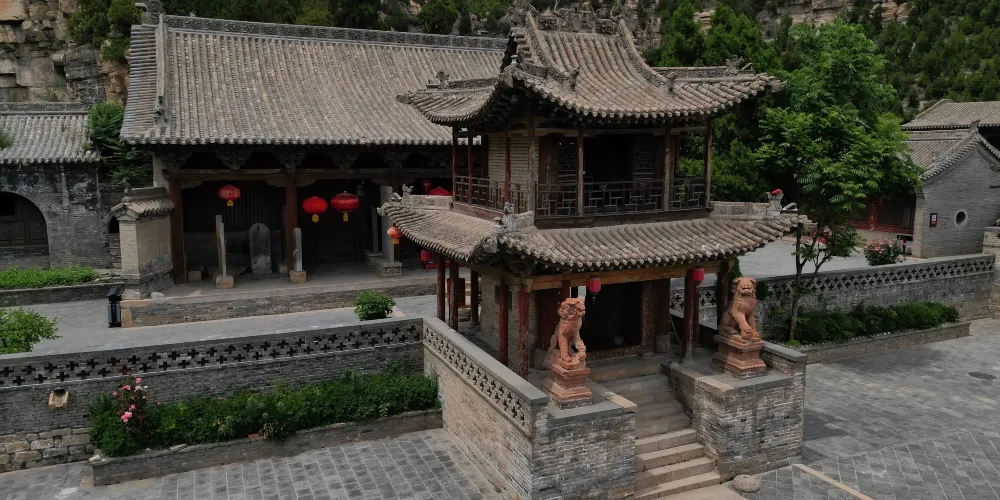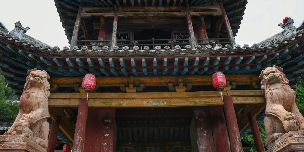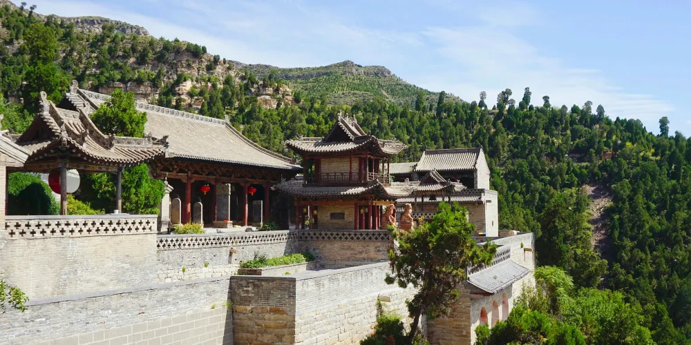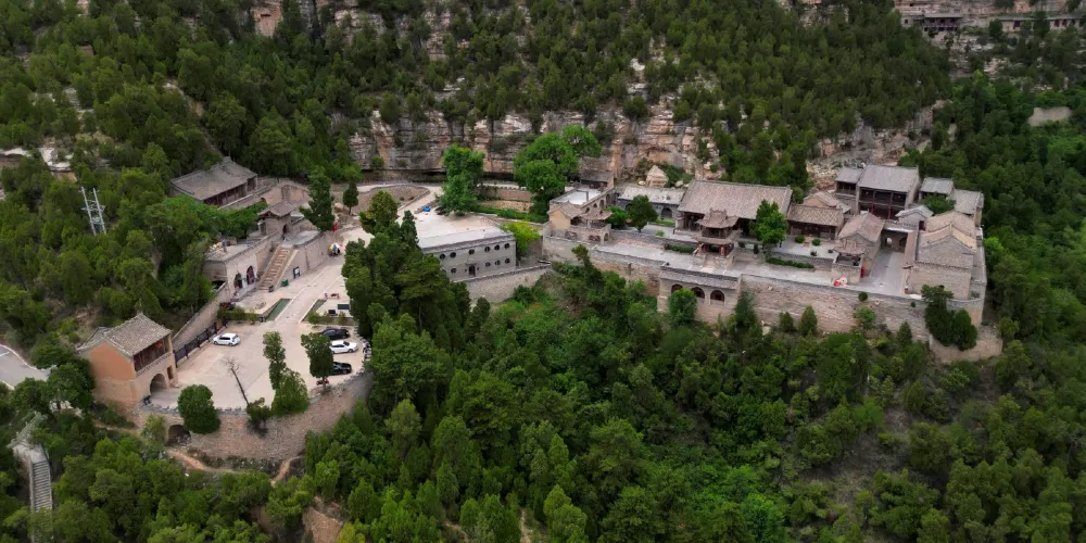 安國寺,位於離石市西10公里的烏崖山麓的一個石窪之中。原名安吉寺,據碑記創建於唐貞觀十一年(637)。寺主院分上下兩層,偏院分內外兩進,共四處院落。主要建築有大雄寶殿、銅塔樓、鐘鼓樓、萬佛閣、關帝閣、觀音樓、十王殿、洞賓樓,又有於清端公祠、於萊公祠、于成龍讀書樓,還有萊公別墅、石牌坊、磚塔等,是省級重點文物保護單位。大雄寶殿為元代建築,多處留有唐代遺風。麪闊五間,進深三間,單檐懸山式木結構建築。殿內供奉着三尊高大精美的三身佛,高達4.8米。殿左右有60平方米的明代佛傳壁畫,採用傳統的工筆重彩畫法。銅塔樓為重檐歇山頂,二層木構建築,上下層四周有圍欄設木梯可攀登上樓,下又有暗室三間。鐘鼓樓為單檐歇山式建築。磚塔為宋式須彌座密檐塔,平面呈八角形,共八層,束腰部分有磚雕圖案,塔身全部採用磨磚對縫仿木構築。偏院又稱清靜處,有於清端公祠,樓上是關帝閣。後院古剎禪院,環境幽雅,建有于成龍讀書樓,還建有洞賓樓、萬佛閣等。寺後百米石崖下是萊公別墅,是于成龍之孫於準在雍正丙午年(1725),就半山石壁天然形成的龐大石崖下修築而成。絕壁半腰有20平方米人工鑿成的石室,石壁上有“龍”、“虎”、“山林”、“野趣”等石刻大字及道光年間永寧州知州王繼賢親筆書寫的山寺石室文。石室內有三十二景可供遊人觀賞,若逢夏季,氣候清爽,實乃避暑勝地。