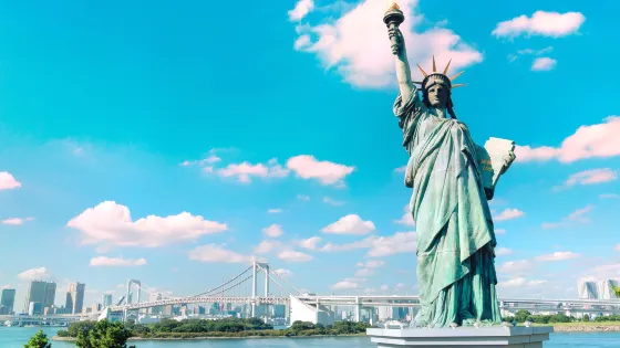 則評價自由女神像位於台場海濱公園內,巴黎市的自由女神像曾被出借在台場展示。現在台場的自由女神像,是原物歸還後,在回應一片惋惜聲中製作的複製品,現在已變成台場的標誌,也在不少熱門日劇中出鏡。來到台場的遊客,大多會以彩虹大橋為背景,與女神一起合影留念。