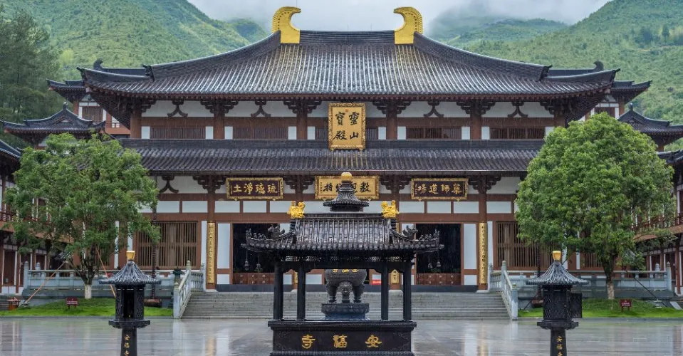 安福寺位於浙江省溫州市文成天聖山,東有天下奇觀——瀑布“百丈漈”、南臨浙南淡水湖泊“飛雲湖”、西接森林公園“銅鈴山峽”、北靠文物古迹“明朝開國元勳——劉基故裡”,並與風景名勝區“龍麒源”交輝相應,天開畫屏,風景秀麗,氣候宜人。
