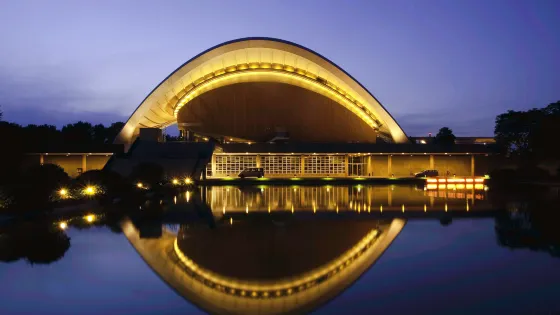 距離市中心 距離市中心2.7公里1957年柏林舉辦了一次以“思維溝通的自由化”為宗旨的國際建築展,從來就溝通自由的美國人便奉獻了這一參展作品。這座美國人設計建造的建築物,由於它的屋頂是重力作用下的拋物線形,柏林人至今稱它為“懷孕的牡蠣”。起初設計它的目的是作為國會大廈使用,不過它並沒有實現設計者的初衷:從1989年起,它被冠名為“世界文化宮”並用來舉辦來自世界各地的講座、產品展、旅遊展、學術展、音樂會以及各類戲劇演出。