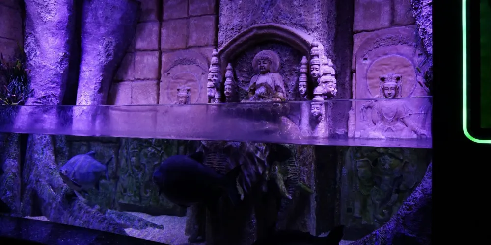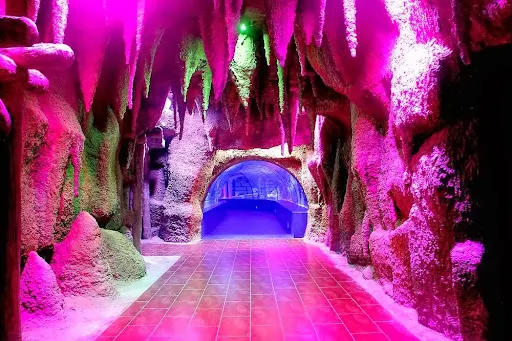 這座水族館建於沿海的Arapsuyu Olbia峽谷附近,除了大量來自地中海地區的海洋生物,還有不少從新加坡等地遠渡重洋而來的珍貴魚類。館內美輪美奐的水下裝飾設計是來自世界有名的意大利雕刻家Benedetti的作品,大都是由其在南非雕刻完成後運送至安塔利亞的。在巨大的水族箱內,還擺放著一架實際尺寸的螺旋槳飛機,以及海船遺骸和潛艇的模型,令這片海底世界更加瑰麗動人。
