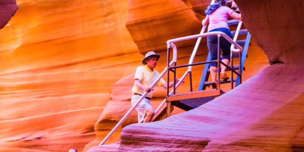 △ 下羚羊峽谷:比起上峽谷,這裡人煙稀少,更有探險的體驗。 下峽谷更深更窄,需要遊客攀爬梯子,穿過狹窄的通道。 它以其獨特的岩層和鮮豔的色彩而聞名。