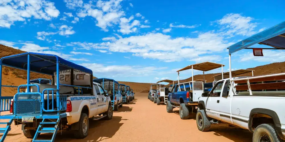 進入上羚羊穀必需參加官方的旅行團,旅行團分為普通團和攝影團,攝影團可以攜帶三腳架等專業設備,除了會有景點講解之外,還會告知合適的拍照地點。上羚羊峽穀在每年的3月底到10月初,有直射穀底的光柱產生,但必須是中午時分出發的攝影團才有可能拍攝到光柱。不過光線效果的主要因素是天氣,較好的天氣是無霧霾和浮塵的清澈的晴天,稍有薄雲或者空氣透明度不高即便是晴天也看不到光柱。