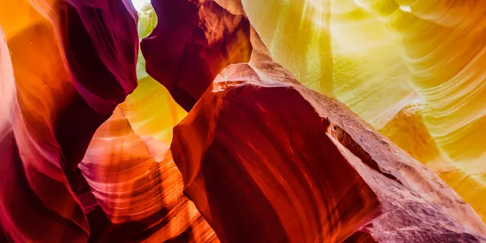 下羚羊谷是世界有名的狹縫型峽谷之一,位於美國亞利桑納州北方,屬於納瓦荷原住民保護區。谷中沒有人工照明,所有可見的光線均來自於峽谷頂部的裂縫,這些光線經過岩石紋理的反复折射進入谷底,產生不規則的色彩變化,五彩繽紛,非常漂亮。