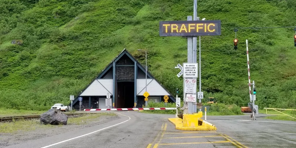 安東•安德森紀念隧道修建於1943年,是一條長約4千米的單行隧道,火車、汽車雙向均可通行。汽車每小時通行一次,要提前10分鐘在等候區排隊,晚上10:30之後關閉。夜晚偶爾會有救護車要進城,會安排一位操作員隨時待命開門。
