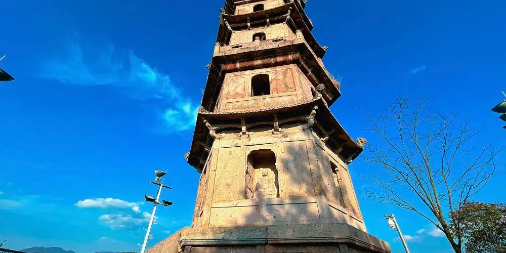 又名管山塔。位於仙居城關東安洲山上,與南峯山上的南峯塔相對。建於明萬曆年間,為樓閣式石結構,六面七層,高8.5米,每層壺內均放有石雕佛像。安洲山兀立於永安溪邊,夕照下的安洲山為不可多得攝影佳處。
