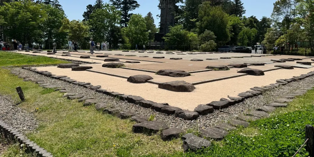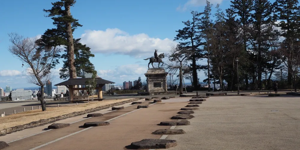 仙台城跡(青葉城跡)是在1601年由伊達政宗建立,位於仙台市青葉區的青葉山上,又稱「青葉城」和「五城樓」。在主要的遺跡天守台前,還有一座伊達政宗全副武裝騎馬的銅像。在城樓旁還有風景迷人的青葉山公園。