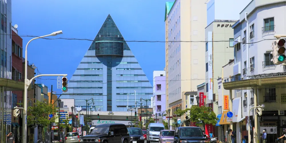青森縣觀光物產館 ASPAM位於日本青森市的海濱地帶,是一座集旅遊資訊、地方特產、文化體驗與觀光於一體的多功能設施。建築外形為等邊三角形,象徵“青森”首字母“A”,自1986年開放以來,已成為青森市的重要地標之一。館內一樓設有紀念品商店,匯集了青森縣的特色產品,如蘋果製品、清酒、木工藝品和刺繡等。二樓的互動區設有360度全景影院,播放青森知名的「睡魔祭」3D影片,還可觀賞傳統刺繡的現場演示,深入了解當地文化。 13樓的展望室提供360度全景視野,可俯瞰青森市區、港口、八甲田山等景色,天氣晴朗時甚至可遠眺北海道。此外,館內還設有餐廳、咖啡廳和旅遊資訊中心,方便遊客取得資訊和休息。這裡交通便利,是遊客了解青森文化與特產的理想場所。