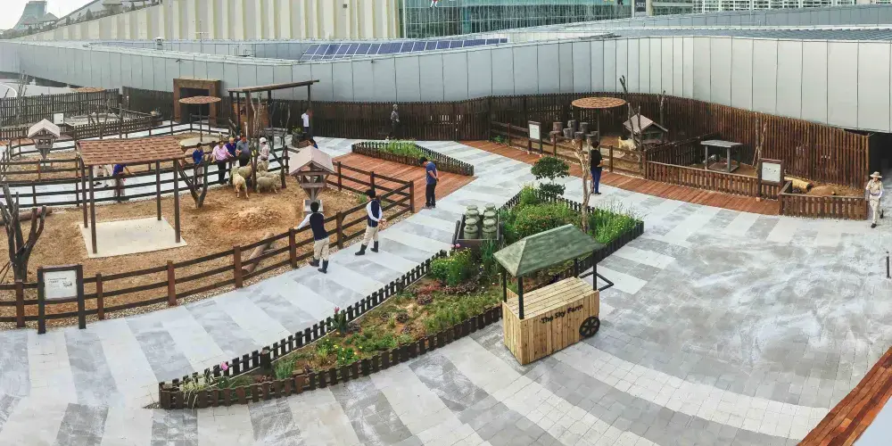 “冰雪樂園”可供遊客在雪和冰面上盡情享受多種多樣的遊樂設施。以北歐的聖誕村為主題,分別由“冰湖”、“冰路”和“冰山”三個區域組成,獨具特色。在冰湖區域,遊客不但可以乘坐韓國傳統雪橇,還可乘坐動物模樣的雪橇等全世界各種各樣的雪橇;在冰路區域設有國內首個狗拉雪橇體驗區,四季都可享受到乘坐6隻西伯利亞雪橇犬(Siberian Husky)拉雪橇的樂趣。