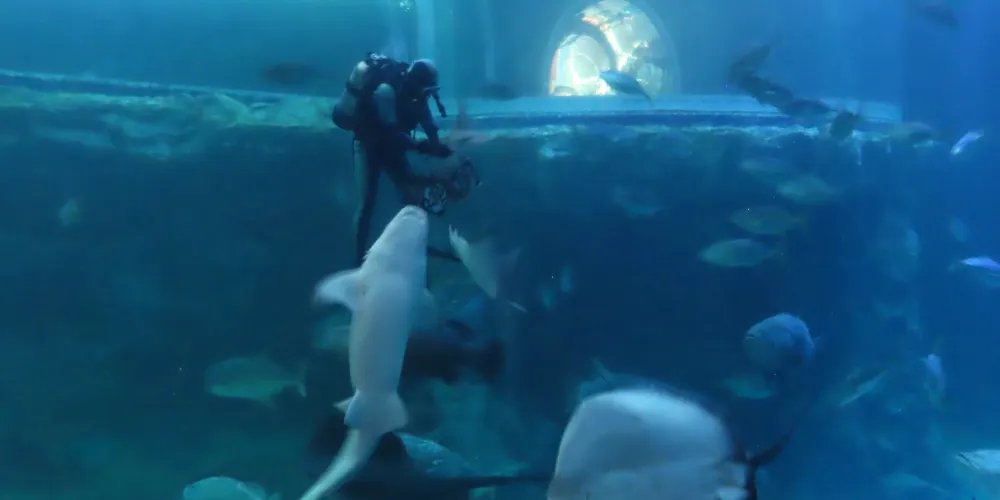 “Aqua planet”分海洋動物館、生態館和體驗館三個區域,白海豚、貝加爾海豹、南美海狗以及海龍等280餘種海洋生物將在水族館中進行展示,展示的總數量達到3萬3千隻。