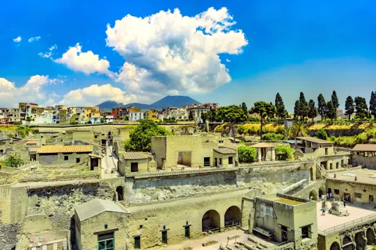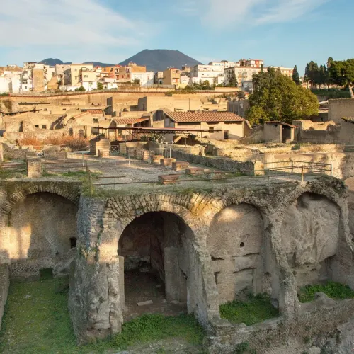 赫庫蘭尼姆古城是公元79年維蘇威火山噴發的「活化石」,相較於龐貝,其被火山灰和熔岩更完整地包裹,留存下大量木質結構、織物殘片及居民日常用品,能更直觀地還原古羅馬普通民眾的真實生活場景。