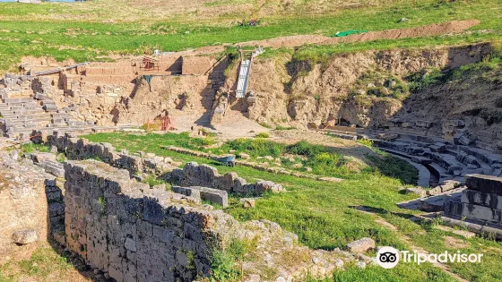 這座古劇院的歷史可以追溯到羅馬時代早期,被認為是古希臘最大的劇院之一。它保留了管弦樂團、觀眾席的擋土牆和部分觀眾席。其建造分為兩個階段,第一階段可追溯至希臘化時期晚期。這座宏偉的建築佔地十四英畝,共有兩層,可容納 16,000 名觀眾。洞穴座位的開口為 140 米,建於公元前 30 至 20 年左右,採用白色大理石,由南面的兩堵擋土牆支撐。頂部有一個週邊畫廊,以保護觀眾免受惡劣天氣的影響。原始場景由木頭製成,並透過固定在地面上的金屬桿來移動。後來,這個場景就成了永久的。劇院的馬蹄形管弦樂團直徑為25米,舖有紅白色大理石板,具有令人印象深刻的美感。在洞穴東側的擋土牆上刻有羅馬時期斯巴達統治者的銘文。